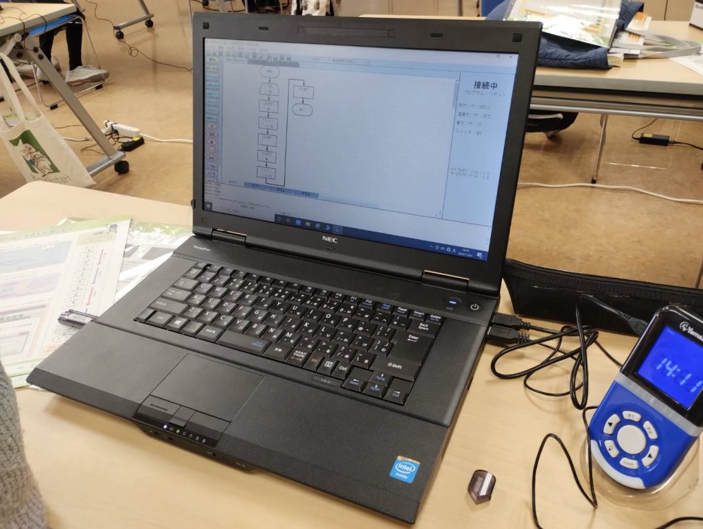 アルゴリズムとフローチャートの違いについて学んだ後、順次処理、分岐処理、反復処理などを含んだプログラムをつくりました。