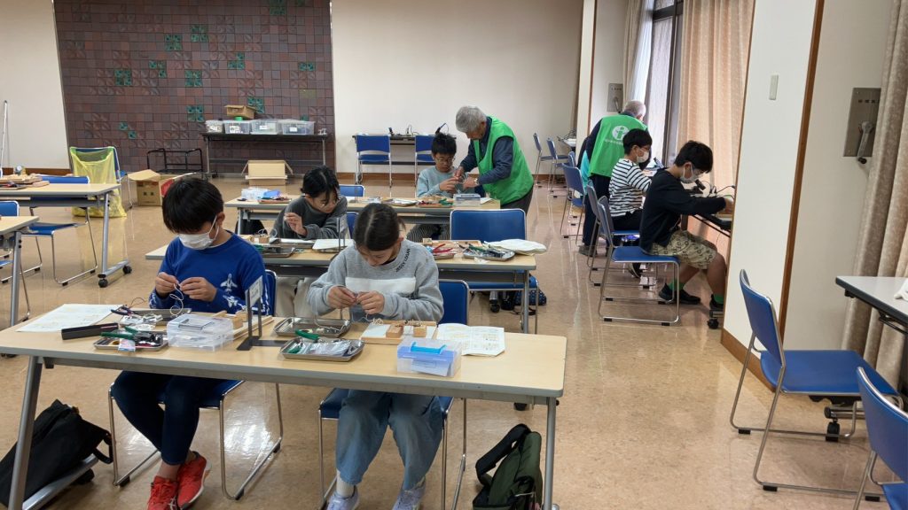 その後ポリバリコンやアンテナ接続用みの虫クリップを取り付け、2石トランジスタラジオキットを完成させました。