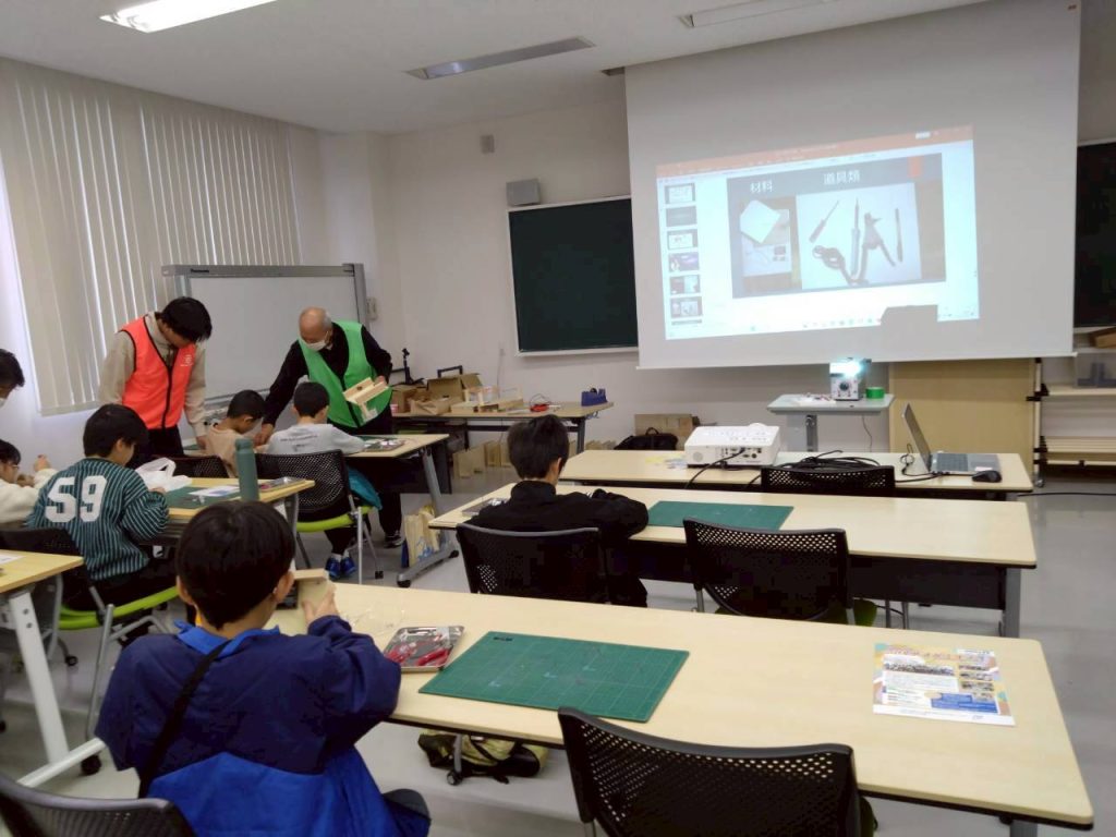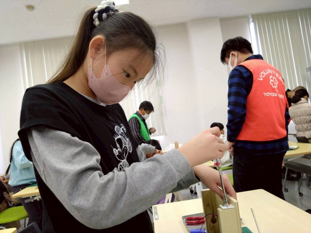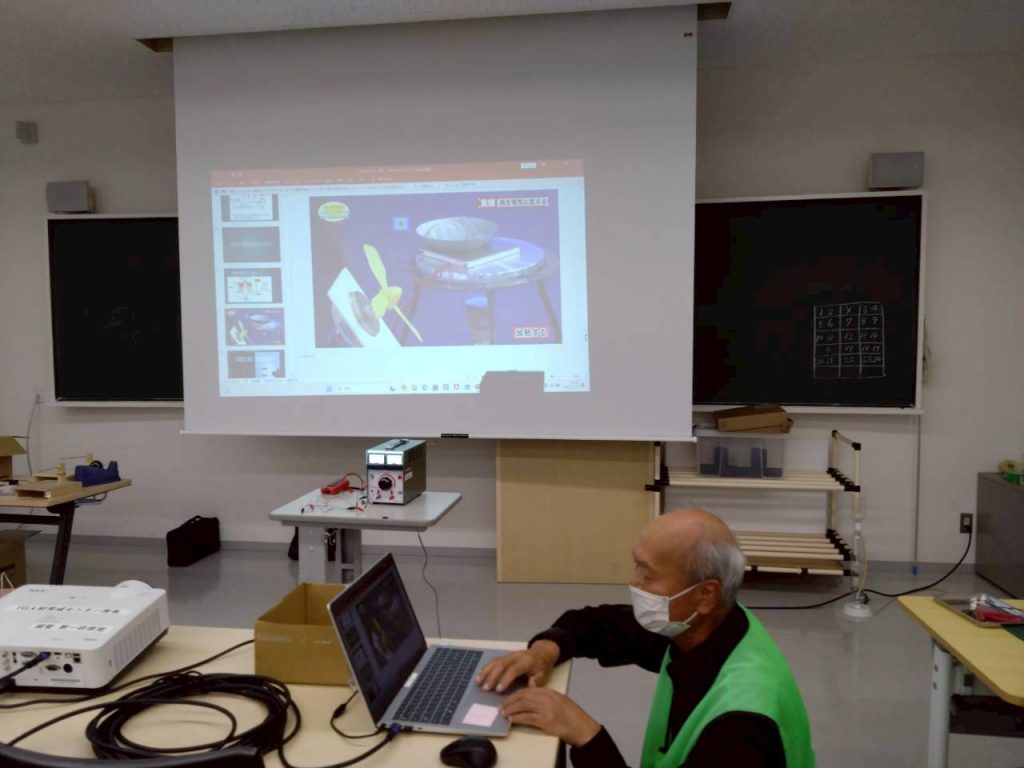 12月の定例教室は、製作の前に、電気抵抗のある導体に電気を流すことによって発熱する「ジュール熱」について学びました。